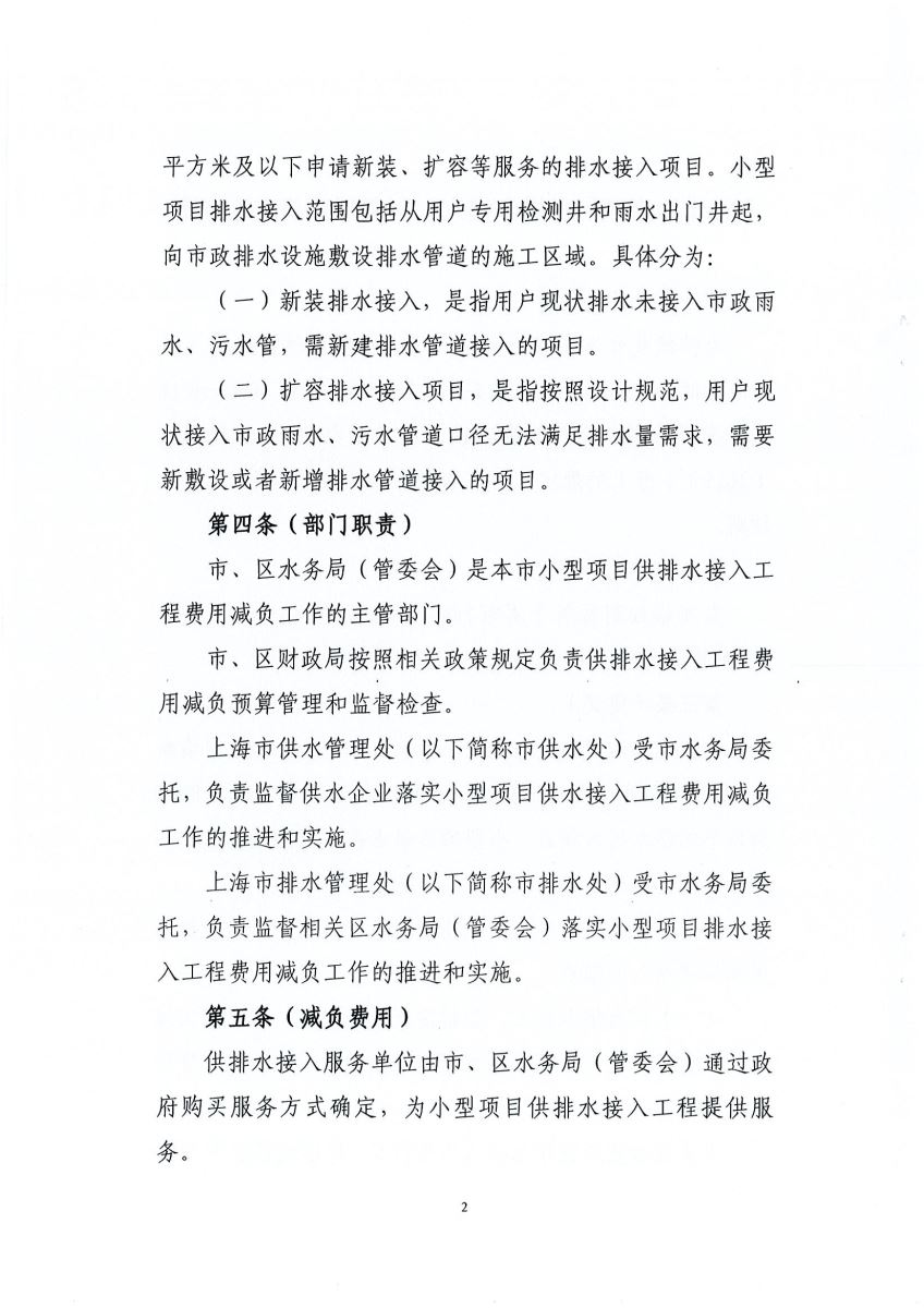 上海市水务局上海市财政局关于印发《上海市小型项目供排水接入工程费用减负实施细则》的通知